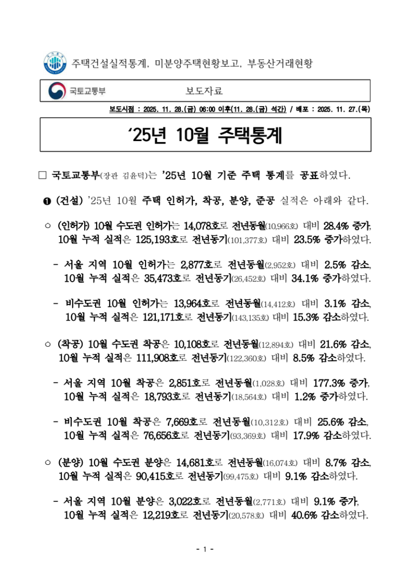 · ‘25년 10월 주택통계 분류 : 주택정책 ( 국토교통부 주택정책과 : 2025-11-28 ) |