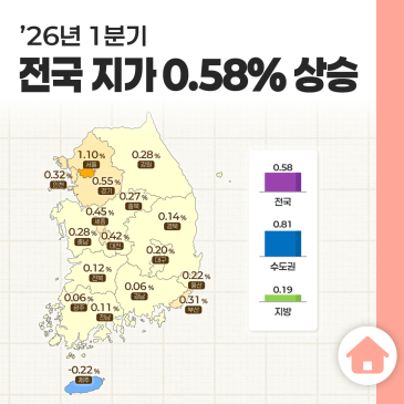 · 주간아파트가격동향(2026.04.20기준) 분류 : 주택정책 ( 한국부동산원 주택통계부 : 2026-04-24 ) |