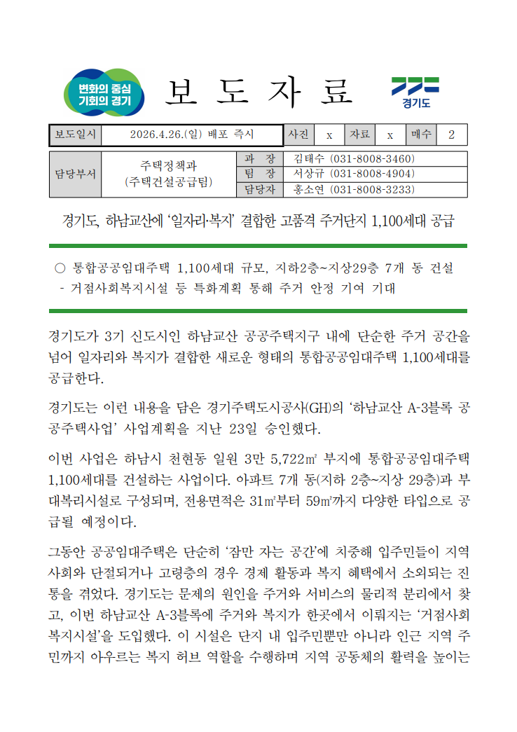· [새로운 시작 인천] 수도권 서부 거점 될 ‘구월2지구’ 공공주택 사업... ( 중앙일보 : 2026-04-27 ) |