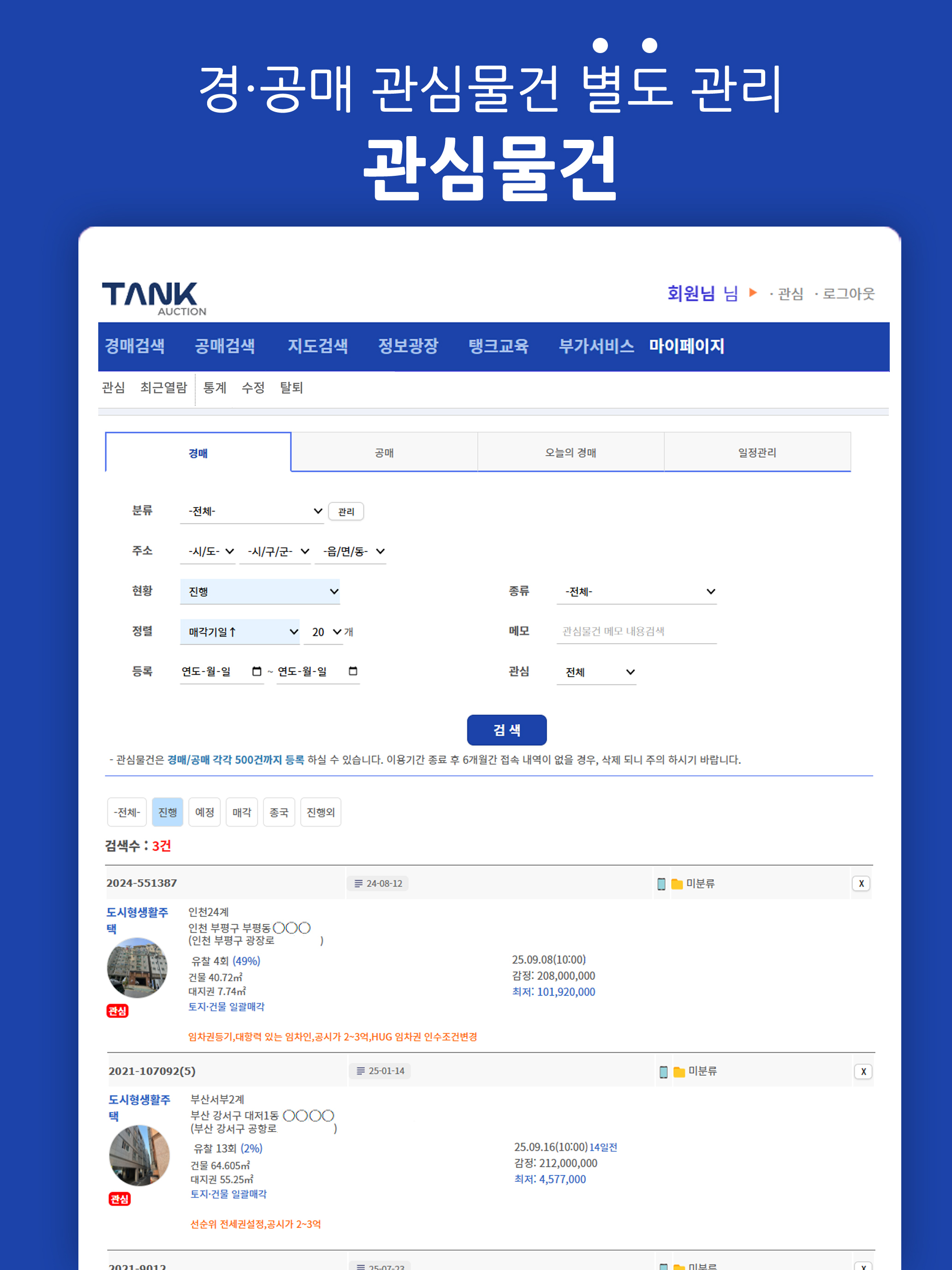 탱크옥션 경·공매 물건을 찾아갈때.. |