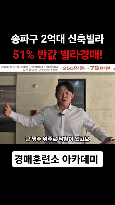 송파구 신축 빌라 -51% 반값폭락 3번 유찰..초역세권 2억대 빌라!