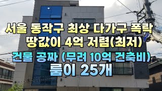 서울 동작구 최상 다가구 폭락 땅값이 4억 저렴*(최저) 건물은 공짜 (무려 10억 건축비 룸이 25개